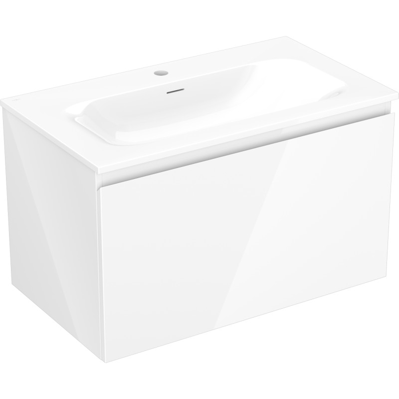 Špecifikácia produktu: Rozmery skrinky: Šírka: 80 cm Hĺbka: 46 cm Výška: 47 cm Farba korpusu: Lesklá biela Materiál korpusu: Lakovaná doska Farba čela: Lesklá biela Materiál čela: Lakovaná MDF doska Štruktúra čela: Hladká Počet zásuviek: 1 voči UV žiareniu Rozmery umývadla: Šírka: 81 cm Hĺbka: 46,5 cm Výška: 16,5 cm Farba umývadla: Lesklá biela Materiál umývadla: Konglomerát Otvor pre prepad: Áno Otvor pre batériu: Áno Zmontovaný výrobok
