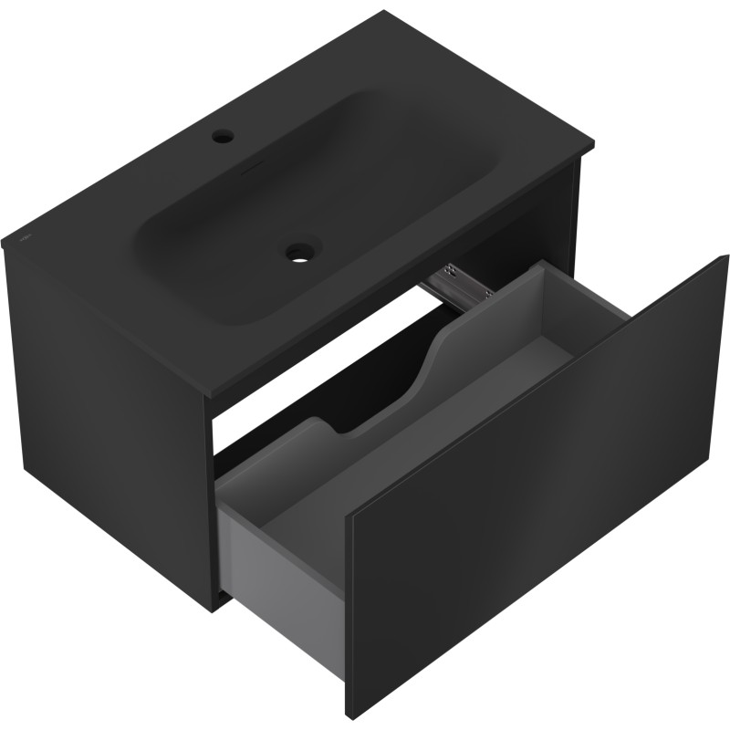 Špecifikácia produktu: Rozmery skrinky: Šírka: 80 cm Hĺbka: 46 cm Výška: 47 cm Farba korpusu: Matná čierna Materiál korpusu: Lakovaná doska Farba čela: Matná čierna Materiál čela: Lakovaná MDF doska Štruktúra čela: Hladká Počet zásuviek: 1 Priestranná zásuvka žiarenie Rozmery umývadla: Šírka: 81 cm Hĺbka: 46,5 cm Výška: 16,5 cm Farba umývadla: Matná čierna Materiál umývadla: Konglomerát Otvor pre prepad: Áno Otvor pre batériu: Áno Zmontovaný výrobok