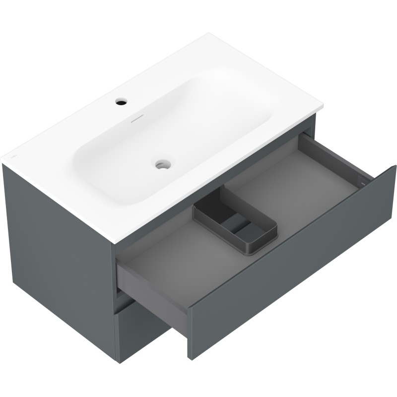 Špecifikácia produktu: Rozmery skrinky: Šírka: 80 cm Hĺbka: 46 cm Výška: 47 cm Farba korpusu: Matný grafit Materiál korpusu: Lakovaná doska Farba čela: Matný grafit Materiál čela: Lakovaná MDF doska Štruktúra čela: Hladká Počet zásuviek: 2 voči UV žiareniu Rozmery umývadla: Šírka: 81 cm Hĺbka: 46,5 cm Výška: 16,5 cm Farba umývadla: Matná biela Materiál umývadla: Konglomerát Otvor pre prepad: Áno Otvor pre batériu: Áno Zmontovaný výrobok