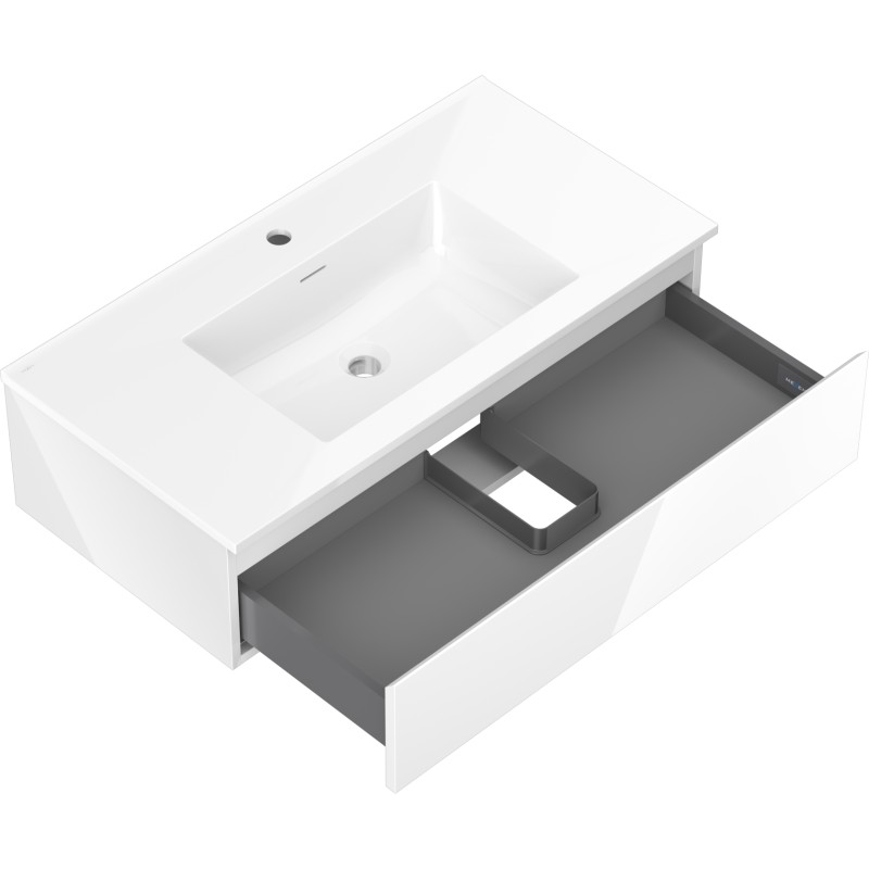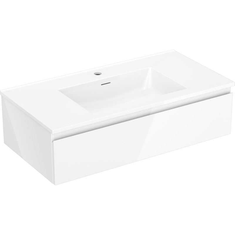 Špecifikácia produktu: Rozmery skrinky: Šírka: 90 cm Hĺbka: 46 cm Výška: 23,5 cm Farba korpusu: Lesklá biela Materiál korpusu: Lakovaná doska Farba čela: Lesklá biela Materiál čela: Lakovaná MDF doska Štruktúra čela: Hladká Počet zásuviek: Povrch odolný voči UV žiareniu Rozmery umývadla: Šírka: 91 cm Hĺbka: 46,5 cm Výška: 16,5 cm Farba umývadla: Lesklá biela Materiál umývadla: Konglomerát Otvor pre prepad: Áno Otvor pre batériu: Áno Zmontovaný výrobok