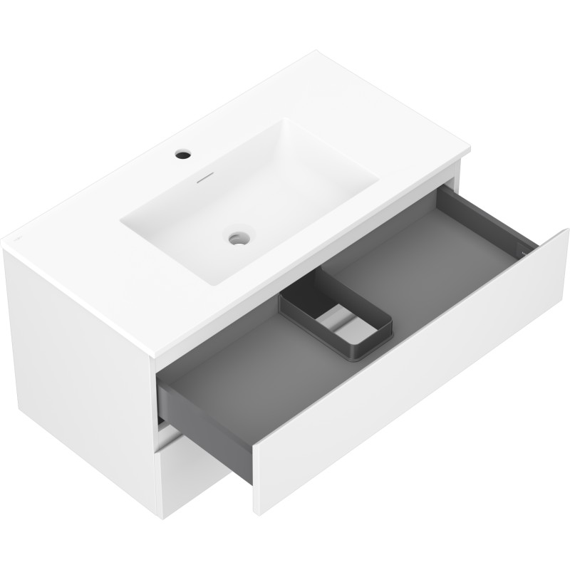 Špecifikácia produktu: Rozmery skrinky: Šírka: 90 cm Hĺbka: 46 cm Výška: 47 cm Farba korpusu: Matná biela Materiál korpusu: Lakovaná doska Farba čela: Matná biela Materiál čela: Lakovaná MDF doska Štruktúra čela: Hladká Počet zásuviek: 2 voči UV žiareniu Rozmery umývadla: Šírka: 91 cm Hĺbka: 46,5 cm Výška: 16,5 cm Farba umývadla: Matná biela Materiál umývadla: Konglomerát Otvor pre prepad: Áno Otvor pre batériu: Áno Zmontovaný výrobok