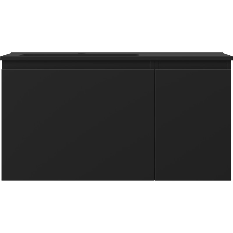 Špecifikácia produktu: Rozmery skrinky: Šírka: 90 cm Hĺbka: 46 cm Výška: 47 cm Sada obsahuje: Zásuvková skrinka pod umývadlo: Šírka: 60 cm Hĺbka: 46 cm Výška: 47 cm Farba korpusu: Matná čierna Materiál korpusu: Lak Lakovaná MDF doska Štruktúra čela: Hladká Počet zásuviek: 1 Priestranná zásuvka s funkciou tlmeného dovierania Umývadlová skrinka s dvierkami: Šírka: 30 cm Výška: 47 cm Hĺbka: 46 cm Farba korpusu: Matná čierna Materiál korpusu: Lakovaná deska doska Štruktúra čela: Hladká Počet dvierok: 1 1 polica Pánty s funkciou tlmeného dovierania Univerzálna montáž dvierok (ľavé/pravé) UV odolný povrch Umývadlo: Šírka: 91 cm Hĺbka: 46,5 cm Výška: 16,5 cm Farba umývadla: A matná Farba umývadla: Matná Otvor pre batériu: Áno Zmontovaný výrobok
