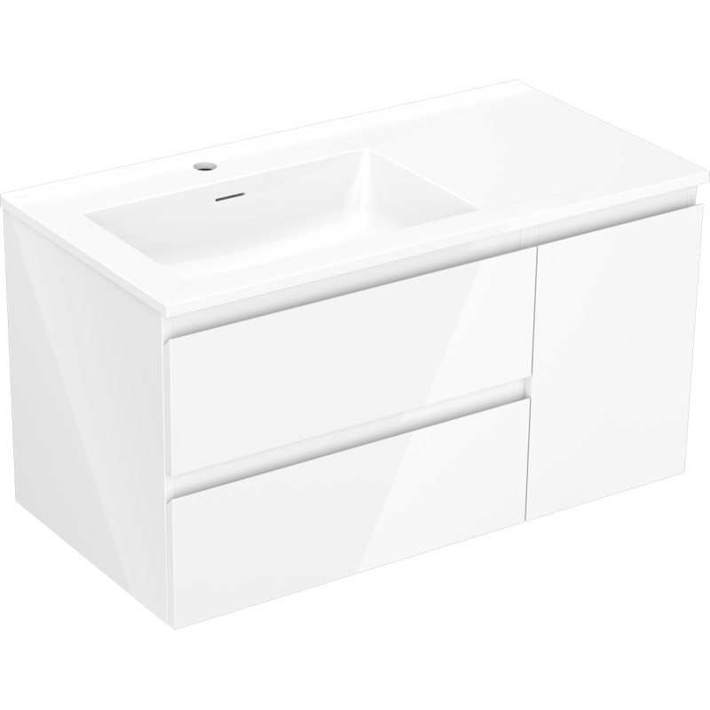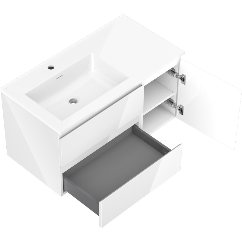 Špecifikácia produktu: Rozmery skrinky: Šírka: 90 cm Hĺbka: 46 cm Výška: 47 cm Sada obsahuje: Zásuvková skrinka pod umývadlo: Šírka: 60 cm Hĺbka: 46 cm Výška: 47 cm Farba korpusu: Biely lesk Materiál korpusu čelá: Lakovaná MDF doska Štruktúra čela: Hladká Počet zásuviek: 2 Priestranná zásuvka s funkciou tlmeného dovierania Povrch odolný proti UV žiareniu Skrinka pod umývadlo s dvierkami: Šírka: 30 cm Výška: 47 cm Hĺbka: 46 cm Farba korpusu Farba korpusu čela: Biely lesk Materiál čela: Lakovaná MDF doska Štruktúra čela: Hladká Počet dvierok: 1 1 polica Panty s funkciou tlmeného dovierania Univerzálna montáž dvierok (ľavé/pravé) Povrch odolný proti UV žiareniu Umývadlo: Šírka: 91 cm Hĺbka: 91 cm umývadlá: Lesklá biela Materiál umývadla: Konglomerát Otvor pre prepad: Áno Otvor pre batériu: Áno Zmontovaný produkt