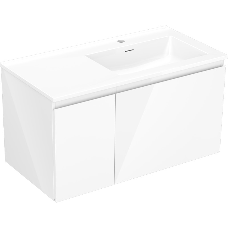 Špecifikácia produktu: Rozmery skrinky: Šírka: 90 cm Hĺbka: 46 cm Výška: 47 cm Sada obsahuje: Zásuvková skrinka pod umývadlo: Šírka: 60 cm Hĺbka: 46 cm Výška: 47 cm Farba korpusu: Biely lesk Materiál korpusu čela: Lakovaná MDF Štruktúra čela: Hladká Počet zásuviek: 1 Priestranná zásuvka s funkciou tlmeného dovierania Umývadlová skrinka s dvierkami: Šírka: 30 cm Výška: 47 cm Hĺbka: 46 cm Farba korpusu: Biely lesk Materiál korpusu: Lak Lakovaná MDF Štruktúra čela: Hladká Počet dvierok: 1 1 polica Pánty s funkciou tlmeného dovierania Univerzálna montáž dvierok (ľavé/pravé) UV odolný povrch Umývadlo: Šírka: 91 cm Hĺbka: 46,5 cm Výška: 16,5 cm Farba umývadla: Farba umývadla prepad: Áno Otvor pre batériu: Áno Zmontovaný výrobok
