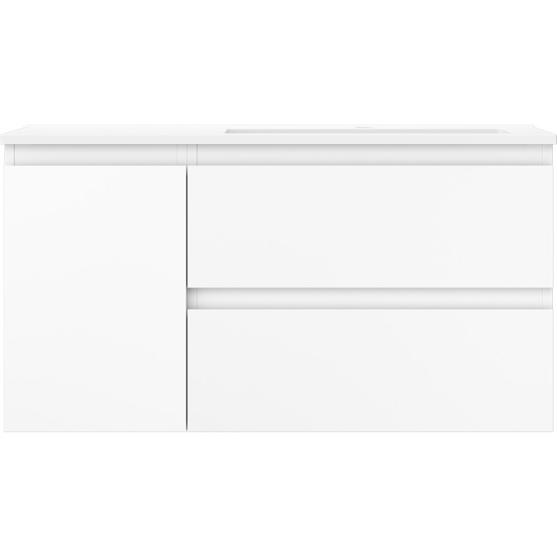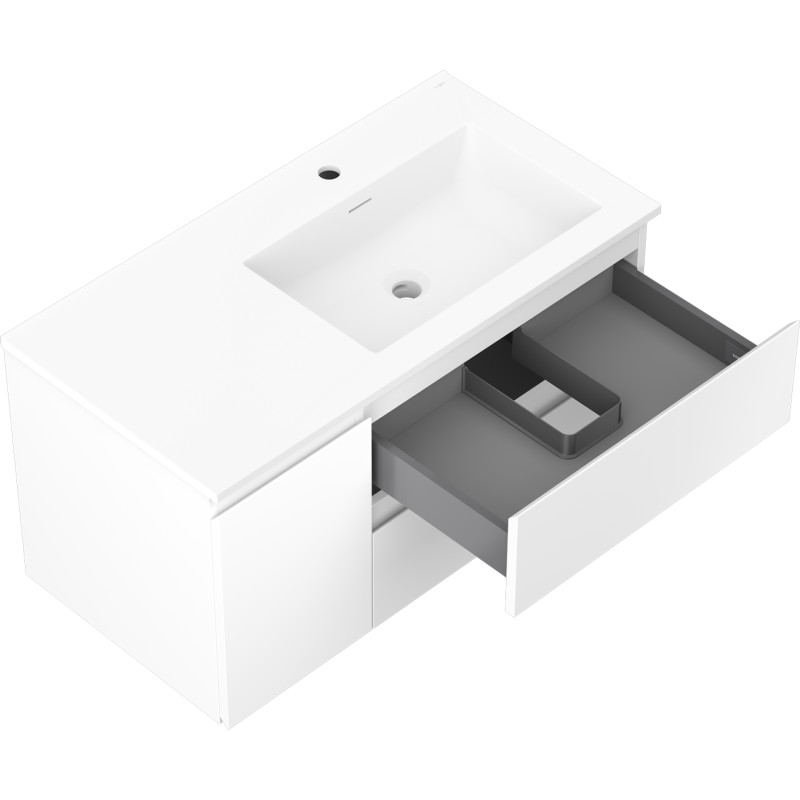 Špecifikácia produktu: Rozmery skrinky: Šírka: 90 cm Hĺbka: 46 cm Výška: 47 cm Sada obsahuje: Zásuvková skrinka pod umývadlo: Šírka: 60 cm Hĺbka: 46 cm Výška: 47 cm Farba korpusu: Matná biela Materiál korpusu čela: Lakovaná MDF doska Štruktúra čela: Hladká Počet zásuviek: 2 Priestranná zásuvka s funkciou tlmeného dovierania Umývadlová skrinka s dvierkami: Šírka: 30 cm Výška: 47 cm Hĺbka: 46 cm Farba korpusu: Matná biela Materiál korpus čela: Lakovaná MDF doska Štruktúra čela: Hladká Počet dvierok: 1 1 polica Pánty s funkciou tlmeného dovierania Univerzálna montáž dvierok (ľavé/pravé) UV odolný povrch Umývadlo: Šírka: 91 cm Hĺbka: 46,5 cm Výška: 16,5 cm Farba: 16,5 cm Konglomerát Otvor na prepad: Áno Otvor na batériu: Áno Produkt zmontovaný