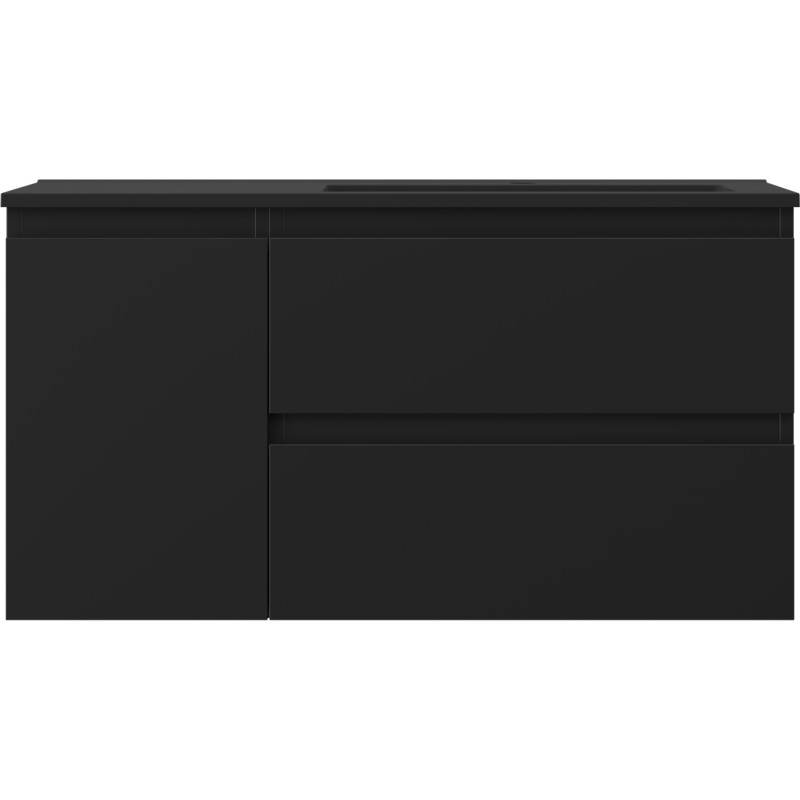 Špecifikácia produktu: Rozmery skrinky: Šírka: 90 cm Hĺbka: 46 cm Výška: 47 cm Sada obsahuje: Zásuvková skrinka pod umývadlo: Šírka: 60 cm Hĺbka: 46 cm Výška: 47 cm Farba korpusu: Matná čierna Materiál korpusu: Lak Lakovaná MDF doska Štruktúra čela: Hladká Počet zásuviek: 2 Priestranná zásuvka s funkciou tlmeného dovierania Umývadlová skrinka s dvierkami: Šírka: 30 cm Výška: 47 cm Hĺbka: 46 cm Farba korpusu: Matná čierna Materiál korpusu: Lakovaná de doska Štruktúra čela: Hladká Počet dvierok: 1 1 polica Pánty s funkciou tlmeného dovierania Univerzálna montáž dvierok (ľavé/pravé) UV odolný povrch Umývadlo: Šírka: 91 cm Hĺbka: 46,5 cm Výška: 16,5 cm Farba umývadla: A matná Farba umývadla: Matná Otvor pre batériu: Áno Zmontovaný výrobok