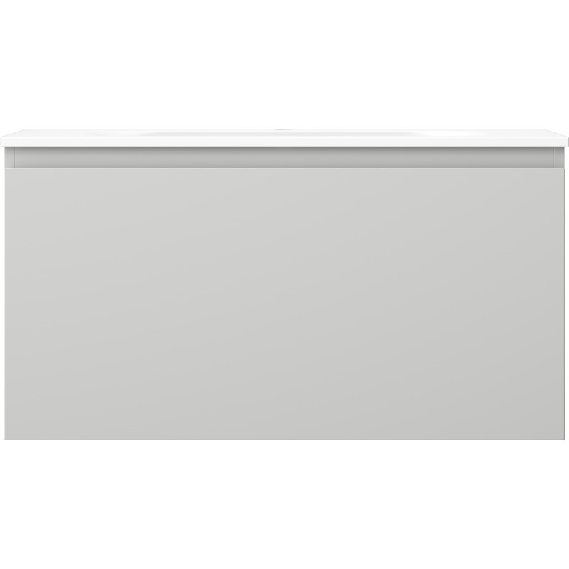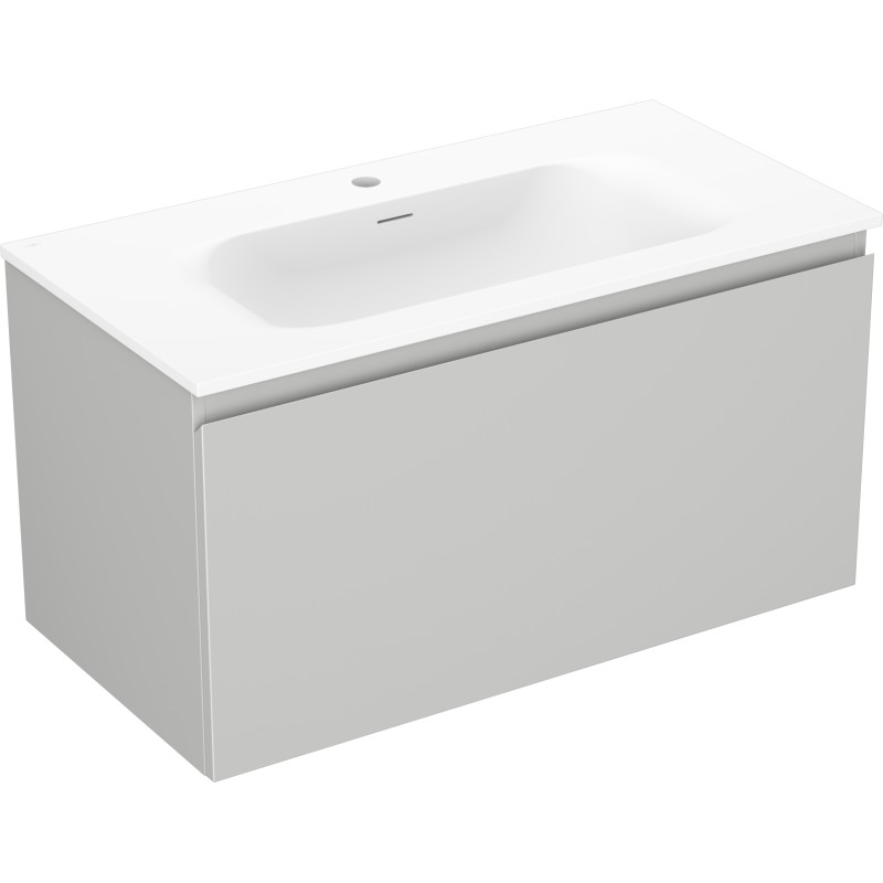Špecifikácia produktu: Rozmery skrinky: Šírka: 90 cm Hĺbka: 46 cm Výška: 47 cm Farba korpusu: Matne šedá Materiál korpusu: Lakovaná doska Farba čela: Matne šedá Materiál čela: Lakovaná MDF doska Štruktúra čela: Hladká Počet zásuviek: 1 Priestor žiarenia Rozmery umývadla: Šírka: 91 cm Hĺbka: 46,5 cm Výška: 16,5 cm Farba umývadla: Matne biela Materiál umývadla: Konglomerát Otvor pre prepad: Áno Otvor pre batériu: Áno Zmontovaný výrobok