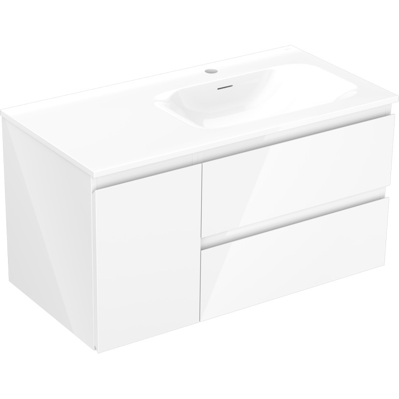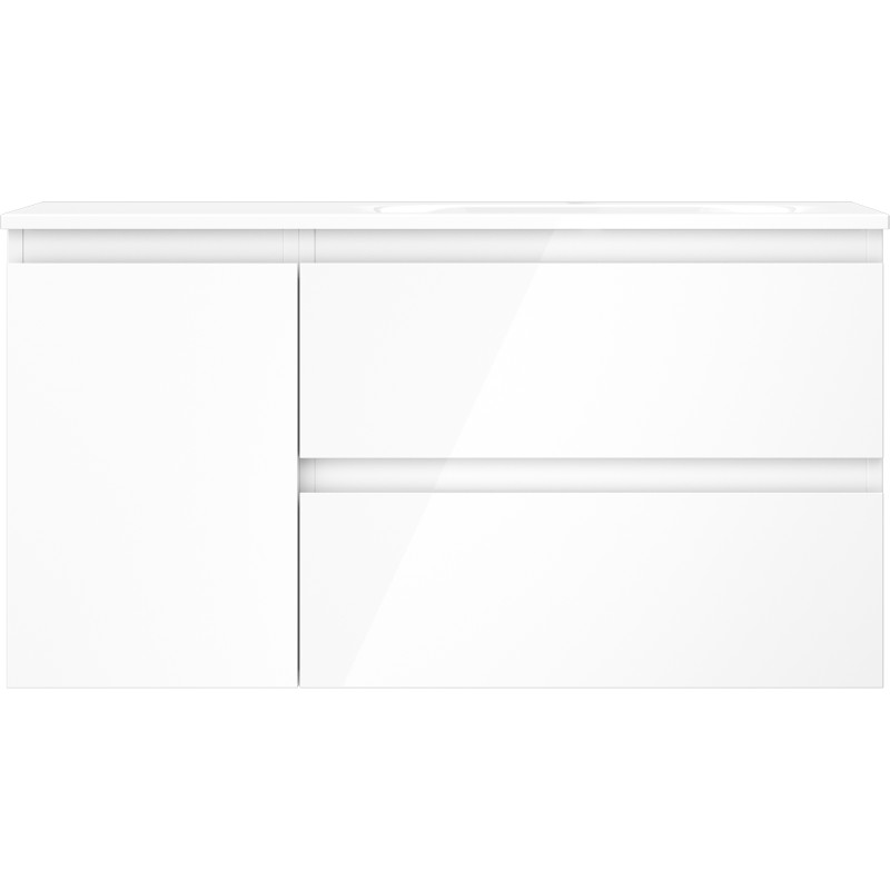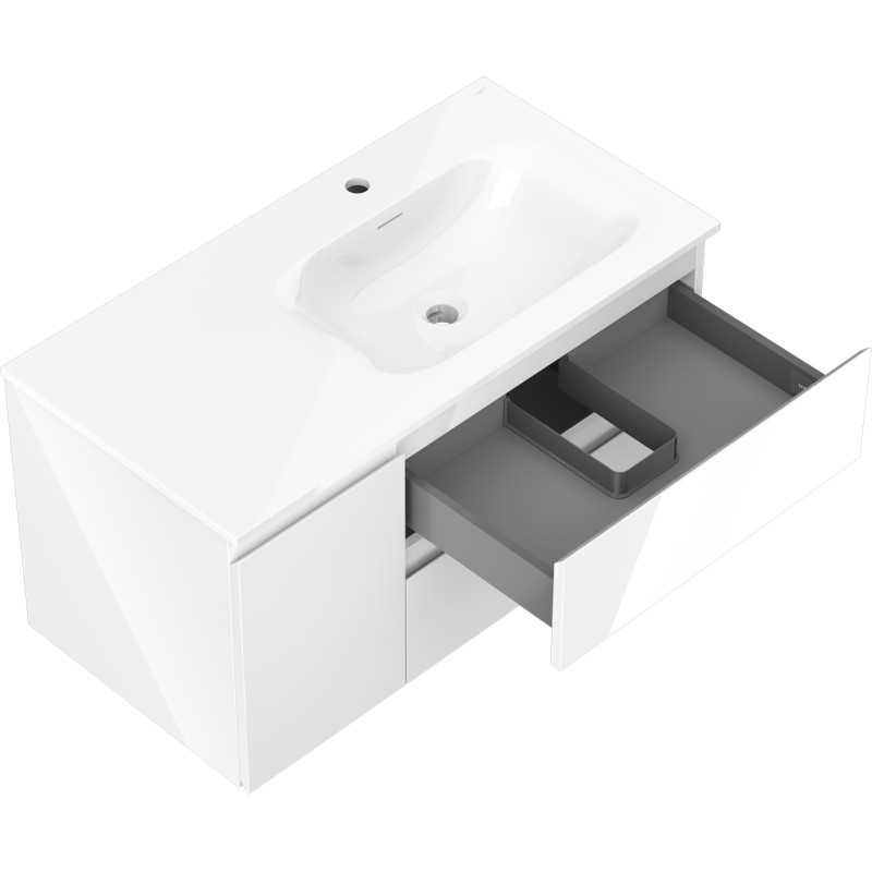 Špecifikácia produktu: Rozmery skrinky: Šírka: 90 cm Hĺbka: 46 cm Výška: 47 cm Sada obsahuje: Zásuvková skrinka pod umývadlo: Šírka: 60 cm Hĺbka: 46 cm Výška: 47 cm Farba korpusu: Biely lesk Materiál korpusu čelá: Lakovaná MDF doska Štruktúra čela: Hladká Počet zásuviek: 2 Priestranná zásuvka s funkciou tlmeného dovierania Povrch odolný proti UV žiareniu Skrinka pod umývadlo s dvierkami: Šírka: 30 cm Výška: 47 cm Hĺbka: 46 cm Farba korpusu Farba korpusu čela: Biely lesk Materiál čela: Lakovaná MDF doska Štruktúra čela: Hladká Počet dvierok: 1 1 polica Panty s funkciou tlmeného dovierania Univerzálna montáž dvierok (ľavé/pravé) Povrch odolný proti UV žiareniu Umývadlo: Šírka: 91 cm Hĺbka: 91 cm umývadlá: Lesklá biela Materiál umývadla: Konglomerát Otvor pre prepad: Áno Otvor pre batériu: Áno Zmontovaný produkt