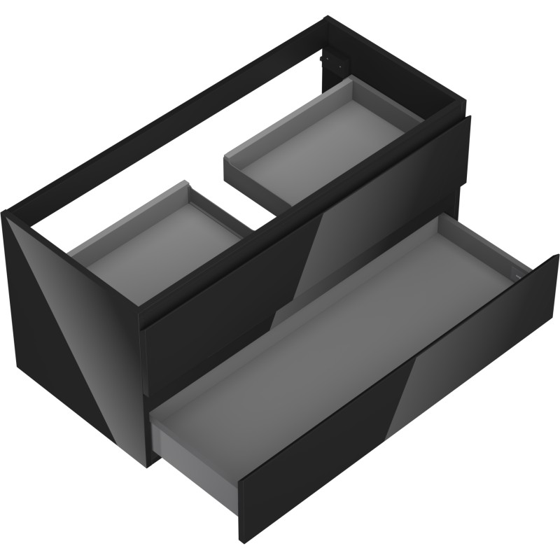 Špecifikácia produktu: Šírka: 100 cm Výška: 47 cm Hĺbka: 46 cm Farba korpusu: Lesklá čierna Materiál korpusu: Lakovaná doska Farba čela: Lesklá čierna Materiál čela: Lakovaná MDF doska Štruktúra čela: Hladká Počet zásuviek: 2 Priestranná zásuvka s funkciou tlmeného Povrch odolný voči UV žiareniu Kombinovateľný s pracovnou doskou alebo umývadlom Otis, Vela Zmontovaný produkt