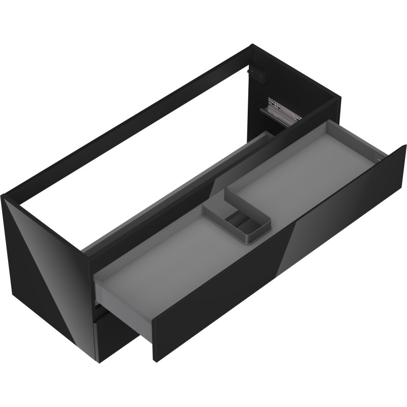 Špecifikácia produktu: Šírka: 120 cm Výška: 47 cm Hĺbka: 46 cm Farba korpusu: Lesklá čierna Materiál korpusu: Lakovaná doska Farba čela: Lesklá čierna Materiál čela: Lakovaná MDF doska Štruktúra čela: Hladká Počet zásuviek: 2 Priestranná zásuvka s funkciou tlmeného Povrch odolný voči UV žiareniu Kombinovateľný s pracovnou doskou alebo umývadlom Otis, Vela Zmontovaný produkt