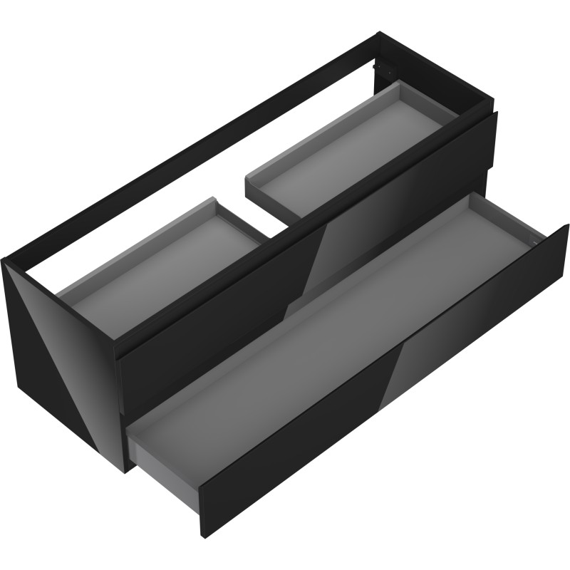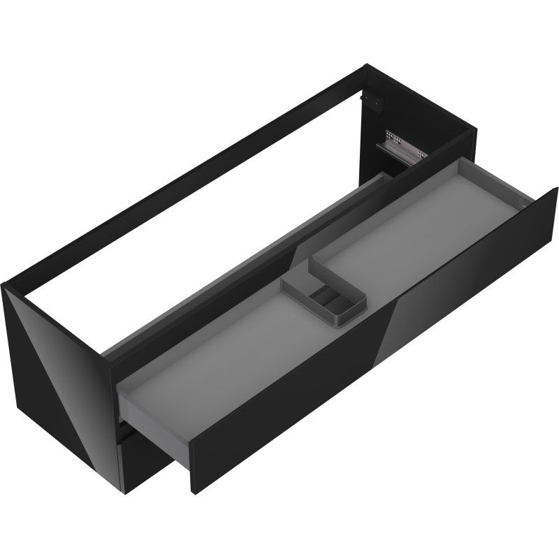Špecifikácia produktu: Šírka: 140 cm Výška: 47 cm Hĺbka: 46 cm Farba korpusu: Lesklá čierna Materiál korpusu: Lakovaná doska Farba čela: Lesklá čierna Materiál čela: Lakovaná MDF doska Štruktúra čela: Hladká Počet zásuviek: 2 Priestranná zásuvka s funkciou tlmeného Povrch odolný voči UV žiareniu Kombinovateľný s pracovnou doskou alebo umývadlom Otis, Vela Zmontovaný produkt
