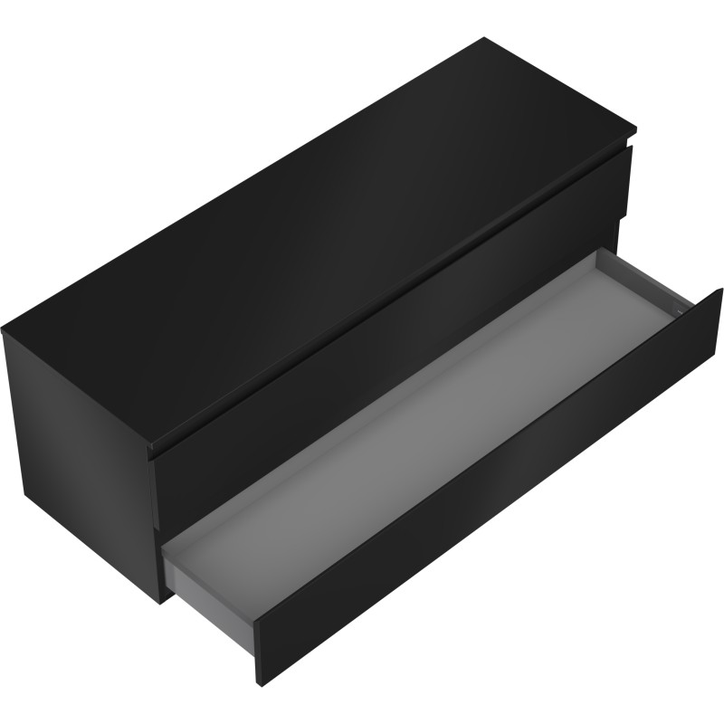 Špecifikácia produktu: Rozmery skrinky: Šírka: 140 cm Výška: 47 cm Hĺbka: 46 cm Farba korpusu: Matná čierna Materiál korpusu: Lakovaná doska Farba čela: Matná čierna Materiál čela: Lakovaná MDF doska Štruktúra čela: Hladká Počet zásuviek: 2 Priestorná ľahký prístup k obsahu zásuvky Povrch odolný voči UV žiareniu Rozmery pracovnej dosky: Šírka: 140,6 cm Hĺbka: 46,5 cm Hrúbka: 1,8 cm Farba pracovnej dosky: Matná čierna Materiál pracovnej dosky: Lakovaná MDF doska Povrch odolný voči UV žiareniu Ideálny ako podstavec pre umyva