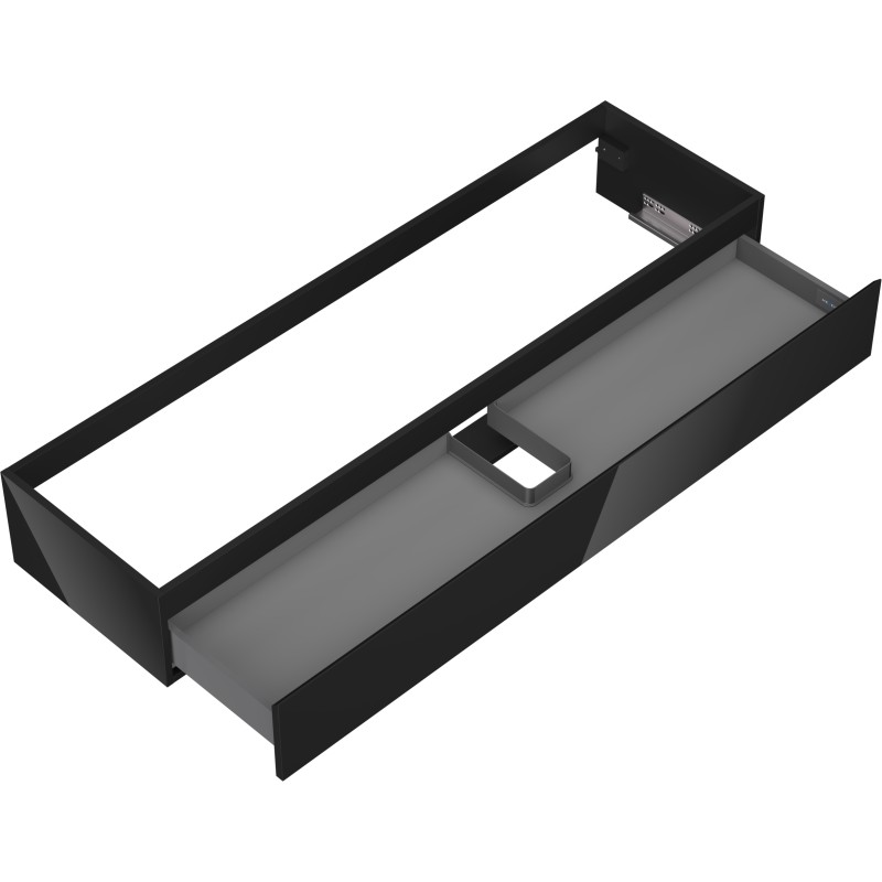 Špecifikácia produktu: Šírka: 160 cm Výška: 23,5 cm Hĺbka: 46 cm Farba korpusu: Lesklá čierna Materiál korpusu: Lakovaná doska Farba čela: Lesklá čierna Materiál čela: Lakovaná MDF doska Štruktúra čela: Hladká Počet zásuviek: 1 Priestranná zásuvka s funkciou Povrch odolný voči UV žiareniu Možno doplniť pracovnou doskou alebo umývadlom Otis, Vela Zmontovaný produkt