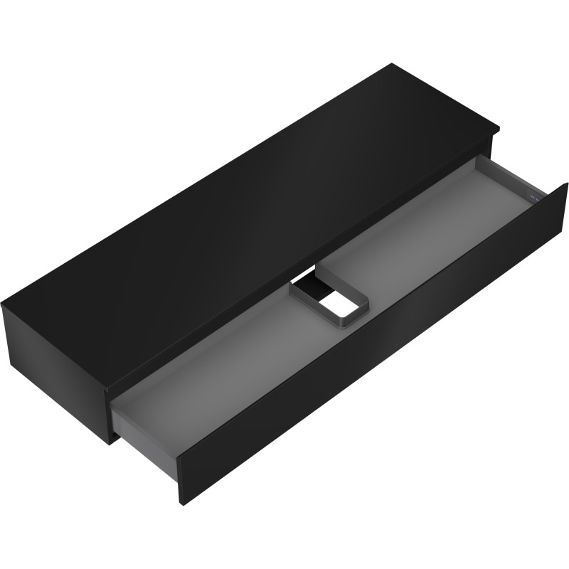 Špecifikácia produktu: Rozmery skrinky: Šírka: 160 cm Výška: 23,5 cm Hĺbka: 46 cm Farba korpusu: Matná čierna Materiál korpusu: Lakovaná doska Farba čela: Matná čierna Materiál čela: Lakovaná MDF doska Štruktúra čela: Hladká Počet zásuviek: 1 pre ľahký prístup k obsahu zásuvky Povrch odolný voči UV žiareniu Rozmery pracovnej dosky: Šírka: 160,6 cm Hĺbka: 46,5 cm Hrúbka: 1,8 cm Farba pracovnej dosky: Matná čierna Materiál pracovnej dosky: Lakovaná MDF doska Povrch odolný voči UV žiareniu Ideálny ako podstavec pre umy