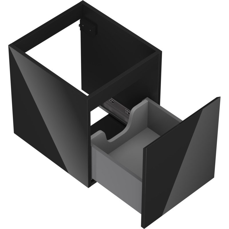 Špecifikácia produktu: Šírka: 40 cm Výška: 47 cm Hĺbka: 46 cm Farba korpusu: Lesklá čierna Materiál korpusu: Lakovaná doska Farba čela: Lesklá čierna Materiál čela: Lakovaná MDF doska Štruktúra čela: Hladká Počet zásuviek: 1 Priestranná zásuvka s funkciou tlmeného dovie odolný voči UV žiareniu Možno doplniť pracovnou doskou alebo umývadlom Otis, Vela Zmontovaný produkt
