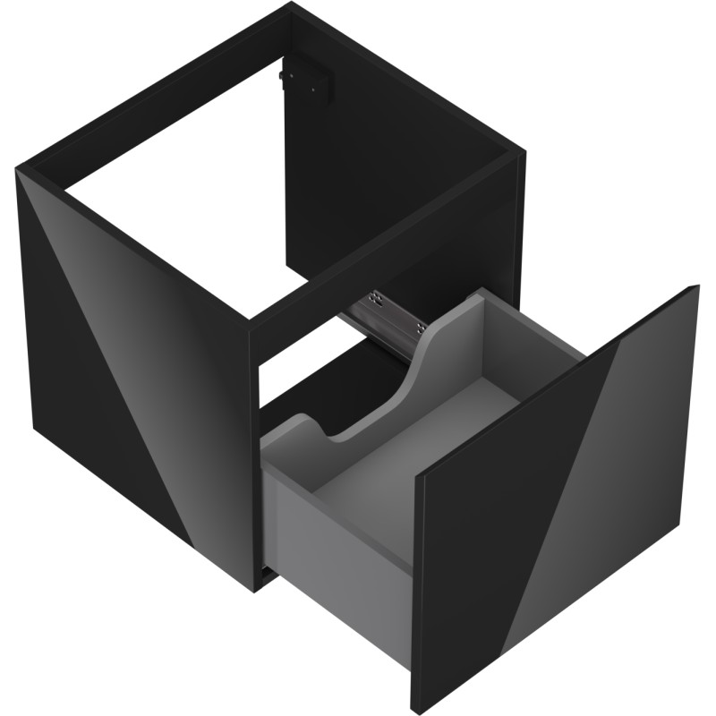 Špecifikácia produktu: Šírka: 50 cm Výška: 47 cm Hĺbka: 46 cm Farba korpusu: Lesklá čierna Materiál korpusu: Lakovaná doska Farba čela: Lesklá čierna Materiál čela: Lakovaná MDF doska Štruktúra čela: Hladká Počet zásuviek: 1 Priestranná zásuvka s funkciou tlmeného dovie odolný voči UV žiareniu Možno doplniť pracovnou doskou alebo umývadlom Otis, Vela Zmontovaný produkt