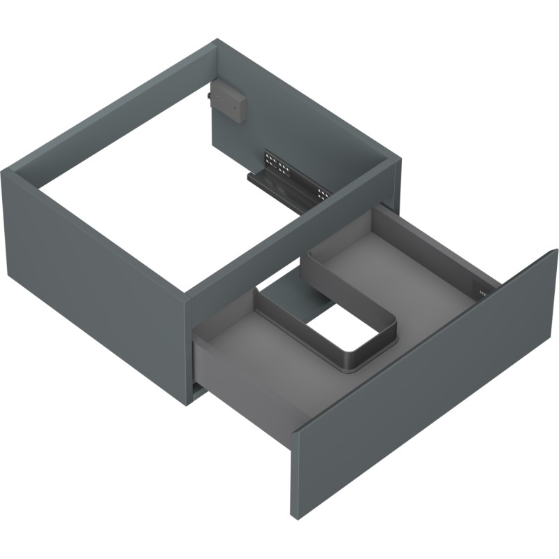 Špecifikácia produktu: Šírka: 50 cm Výška: 23,5 cm Hĺbka: 46 cm Farba korpusu: Matný grafit Materiál korpusu: Lakovaná doska Farba čela: Matný grafit Materiál čela: Lakovaná MDF doska Štruktúra čela: Hladká Počet zásuviek: 1 Priestranná zásuvka s funkciou obsahu zásuvky Povrch odolný voči UV žiareniu Možno doplniť pracovnou doskou alebo umývadlom Otis, Vela Zmontovaný produkt