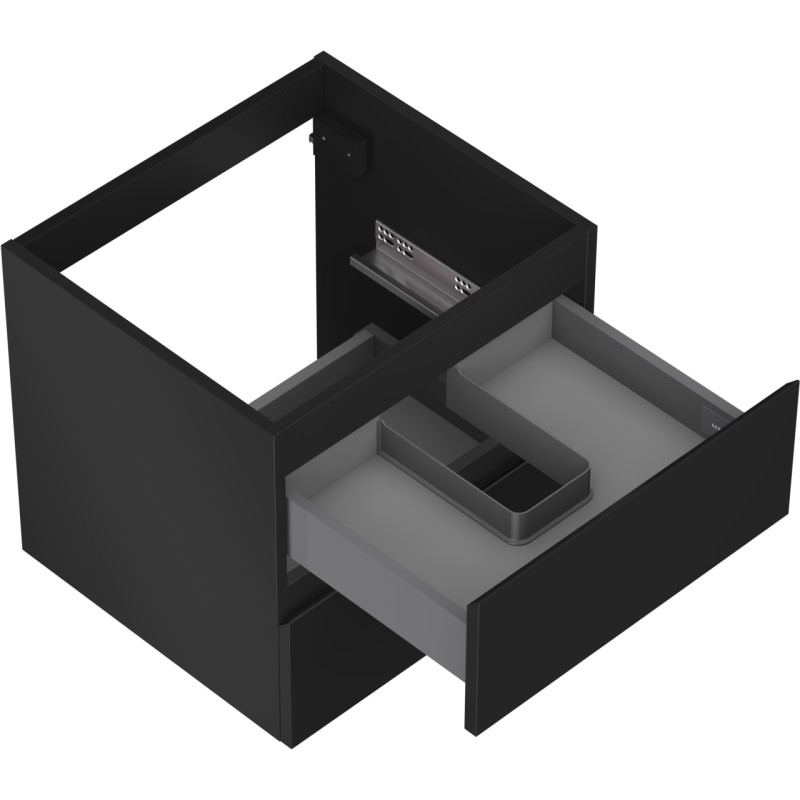 Špecifikácia produktu: Šírka: 50 cm Výška: 47 cm Hĺbka: 46 cm Farba korpusu: Matná čierna Materiál korpusu: Lakovaná doska Farba čela: Matná čierna Materiál čela: Lakovaná MDF doska Štruktúra čela: Hladká Počet zásuviek: 2 Priestranná zásuvka s funkciou tlmeného dovie odolný voči UV žiareniu Kombinovateľný s pracovnou doskou alebo umývadlom Otis, Vela Zmontovaný produkt