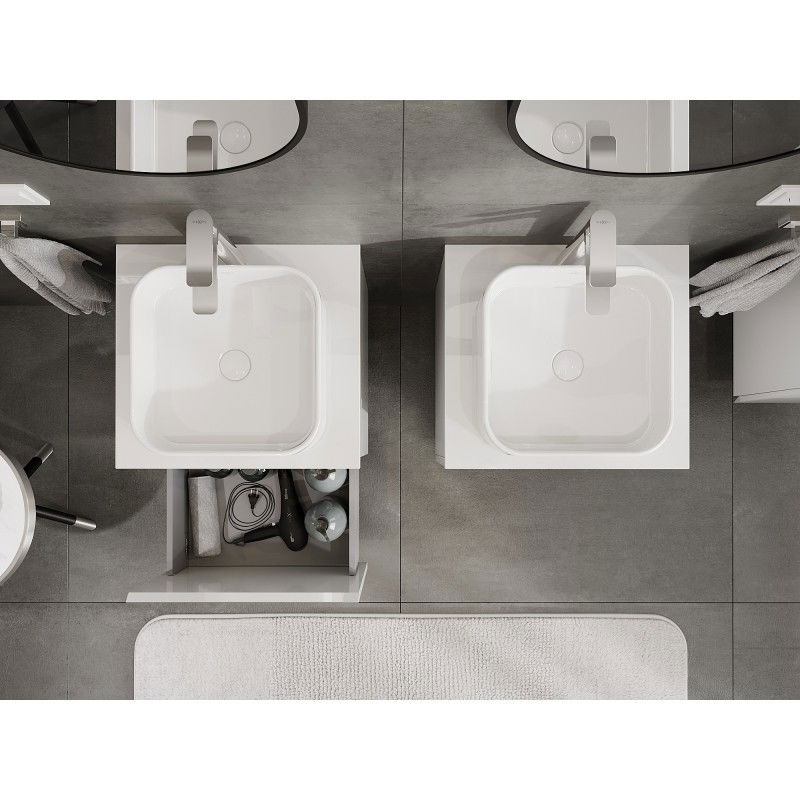 Špecifikácia produktu: Rozmery skrinky: Šírka: 50 cm Výška: 47 cm Hĺbka: 46 cm Farba korpusu: Lesklá biela Materiál korpusu: Lakovaná doska Farba čela: Lesklá biela Materiál čela: Lakovaná MDF doska Štruktúra čela: Hladká Počet zásuviek: 1 výsuv pre ľahký prístup k obsahu zásuvky Povrch odolný voči UV žiareniu Rozmery pracovnej dosky: Šírka: 50,6 cm Hĺbka: 46,5 cm Hrúbka: 1,8 cm Farba pracovnej dosky: Lesklá biela Materiál pracovnej dosky: Lakovaná MDF doska Povrch odolný voči UV žiareniu Ideálny ako podstavec