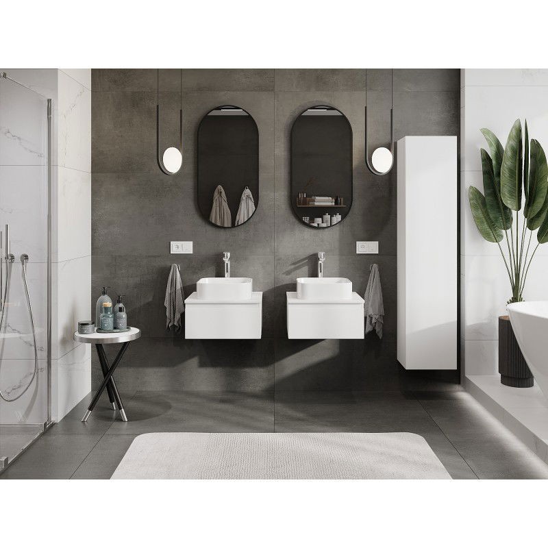 Špecifikácia produktu: Rozmery skrinky: Šírka: 50 cm Výška: 23,5 cm Hĺbka: 46 cm Farba korpusu: Matná biela Materiál korpusu: Lakovaná doska Farba čela: Matná biela Materiál čela: Lakovaná MDF doska Štruktúra čela: Hladká Počet zásuviek: výsuv pre ľahký prístup k obsahu zásuvky Povrch odolný voči UV žiareniu Rozmery pracovnej dosky: Šírka: 50,6 cm Hĺbka: 46,5 cm Hrúbka: 1,8 cm Farba pracovnej dosky: Matná biela Materiál pracovnej dosky: Lakovaná MDF doska Povrch odolný voči UV žiareniu Ideálny ako podstavec