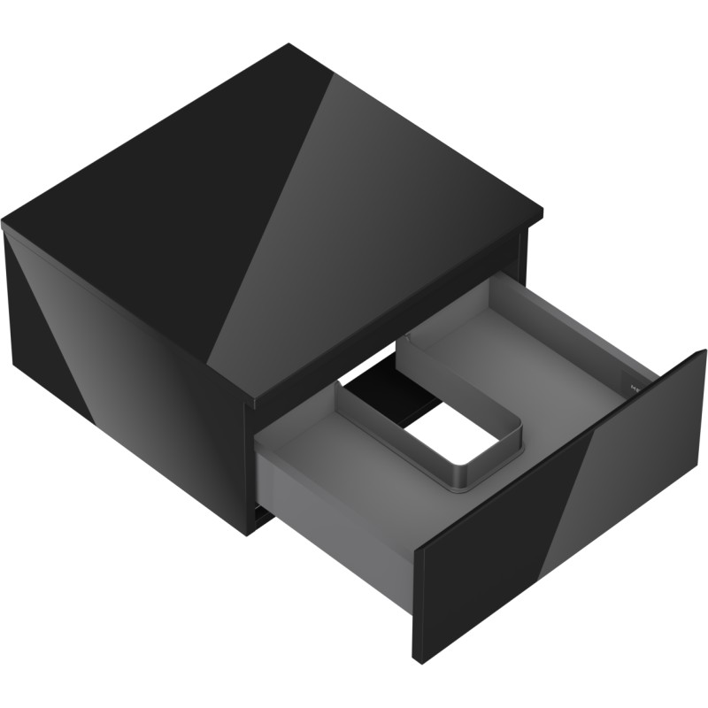 Špecifikácia produktu: Rozmery skrinky: Šírka: 50 cm Výška: 23,5 cm Hĺbka: 46 cm Farba korpusu: Čierna lesklá Materiál korpusu: Lakovaná doska Farba čela: Čierna lesklá Materiál čela: Lakovaná MDF doska Štruktúra čela: Hladká Počet zásuviek: 1 pre ľahký prístup k obsahu zásuvky Povrch odolný voči UV žiareniu Rozmery pracovnej dosky: Šírka: 50,6 cm Hĺbka: 46,5 cm Hrúbka: 1,8 cm Farba pracovnej dosky: Čierna lesklá Materiál pracovnej dosky: Lakovaná MDF doska Povrch odolný voči UV žiareniu Ideálny ako podstavec pre umy