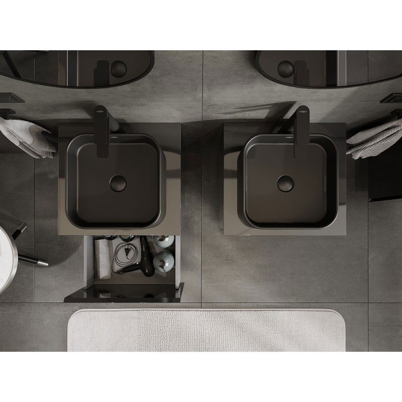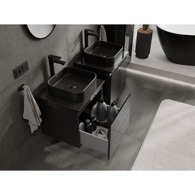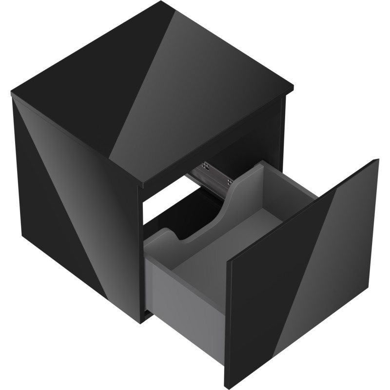 Špecifikácia produktu: Rozmery skrinky: Šírka: 50 cm Výška: 47 cm Hĺbka: 46 cm Farba korpusu: Čierna lesklá Materiál korpusu: Lakovaná doska Farba čela: Čierna lesklá Materiál čela: Lakovaná MDF doska Štruktúra čela: Hladká Počet zásuviek: 1 Priestor ľahký prístup k obsahu zásuvky Povrch odolný voči UV žiareniu Rozmery pracovnej dosky: Šírka: 50,6 cm Hĺbka: 46,5 cm Hrúbka: 1,8 cm Farba pracovnej dosky: Čierna lesklá Materiál pracovnej dosky: Lakovaná MDF doska Povrch odolný voči UV žiareniu Ideálny ako podstavec pre umyva