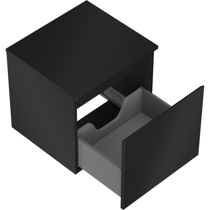 Špecifikácia produktu: Rozmery skrinky: Šírka: 50 cm Výška: 47 cm Hĺbka: 46 cm Farba korpusu: Matná čierna Materiál korpusu: Lakovaná doska Farba čela: Matná čierna Materiál čela: Lakovaná MDF doska Štruktúra čela: Hladká Počet zásuviek: 1 Priestranná ľahký prístup k obsahu zásuvky Povrch odolný voči UV žiareniu Rozmery pracovnej dosky: Šírka: 50,6 cm Hĺbka: 46,5 cm Hrúbka: 1,8 cm Farba pracovnej dosky: Matná čierna Materiál pracovnej dosky: Lakovaná MDF doska Povrch odolný voči UV žiareniu Ideálny ako podstavec pre umývadlá