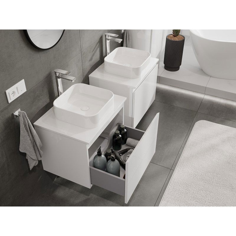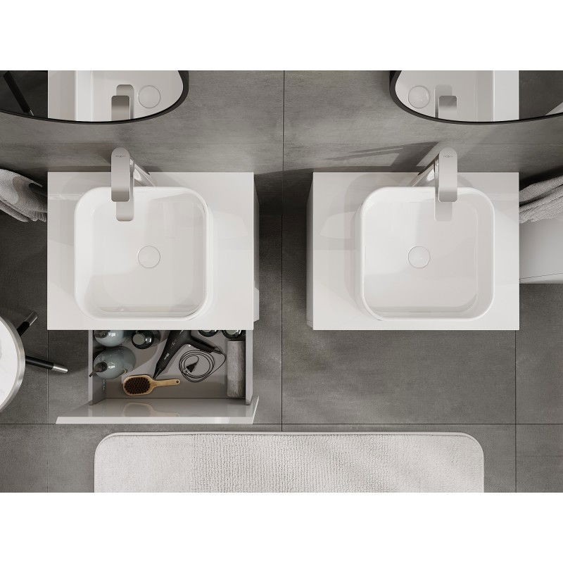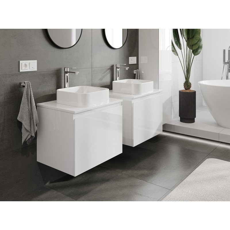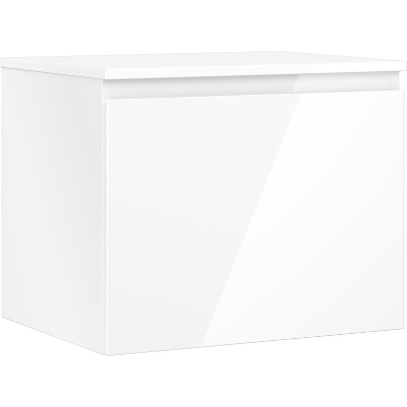 Špecifikácia produktu: Rozmery skrinky: Šírka: 60 cm Výška: 47 cm Hĺbka: 46 cm Farba korpusu: Lesklá biela Materiál korpusu: Lakovaná doska Farba čela: Lesklá biela Materiál čela: Lakovaná MDF doska Štruktúra čela: Hladká Počet zásuviek: 1 výsuv pre ľahký prístup k obsahu zásuvky Povrch odolný voči UV žiareniu Rozmery pracovnej dosky: Šírka: 60,6 cm Hĺbka: 46,5 cm Hrúbka: 1,8 cm Farba pracovnej dosky: Lesklá biela Materiál pracovnej dosky: Lakovaná MDF doska Povrch odolný voči UV žiareniu Ideálny ako podstavec