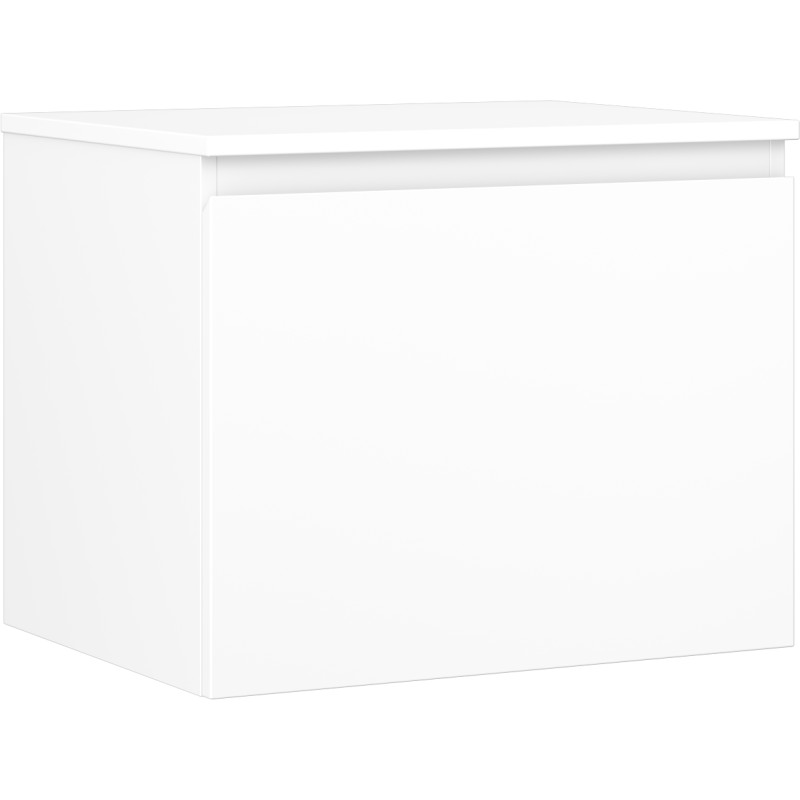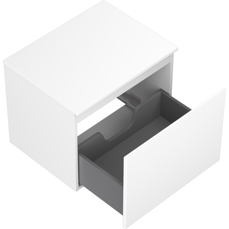 Špecifikácia produktu: Rozmery skrinky: Šírka: 60 cm Výška: 47 cm Hĺbka: 46 cm Farba korpusu: Matná biela Materiál korpusu: Lakovaná doska Farba čela: Matná biela Materiál čela: Lakovaná MDF doska Štruktúra čela: Hladká Počet zásuviek: 1 výsuv pre ľahký prístup k obsahu zásuvky Povrch odolný voči UV žiareniu Rozmery pracovnej dosky: Šírka: 60,6 cm Hĺbka: 46,5 cm Hrúbka: 1,8 cm Farba pracovnej dosky: Matná biela Materiál pracovnej dosky: Lakovaná MDF doska Povrch odolný voči UV žiareniu Ideálny ako podstavec
