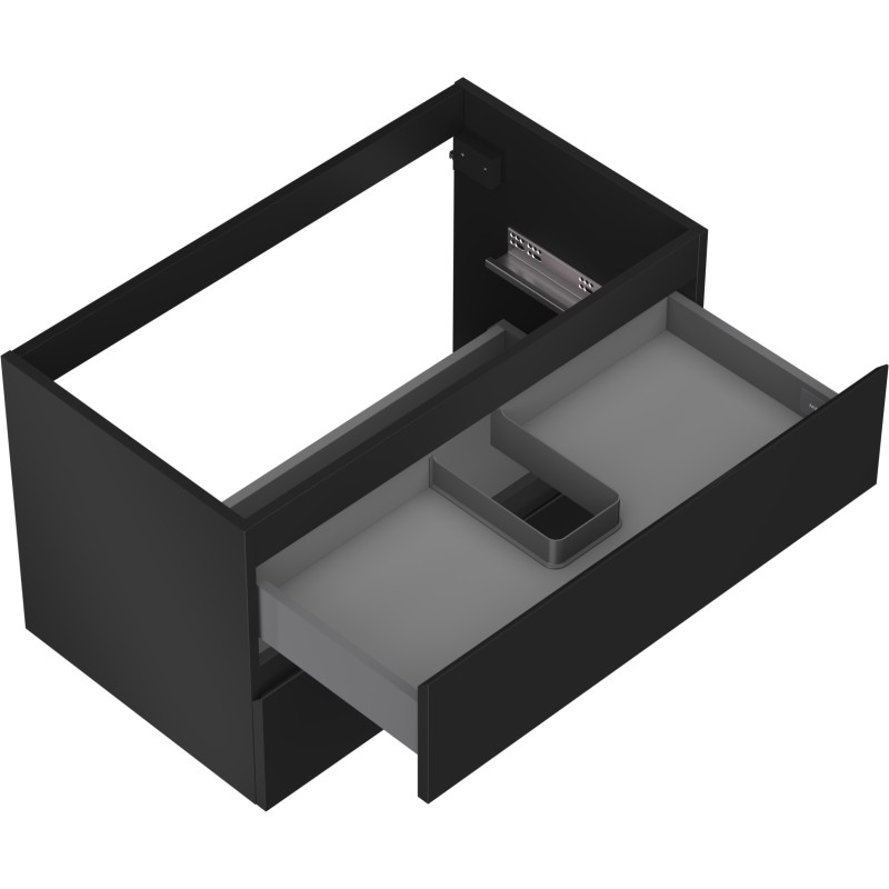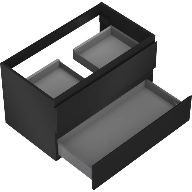 Špecifikácia produktu: Šírka: 80 cm Výška: 47 cm Hĺbka: 46 cm Farba korpusu: Matná čierna Materiál korpusu: Lakovaná doska Farba čela: Matná čierna Materiál čela: Lakovaná MDF doska Štruktúra čela: Hladká Počet zásuviek: 2 Priestranná zásuvka s funkciou tlmeného dovie odolný voči UV žiareniu Kombinovateľný s pracovnou doskou alebo umývadlom Otis, Vela Zmontovaný produkt