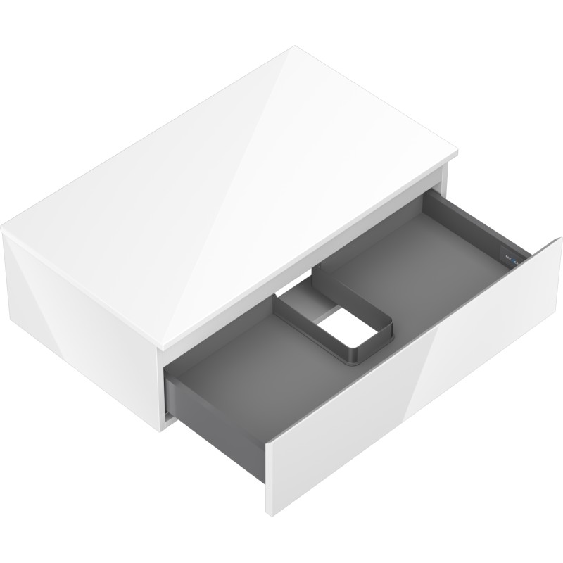 Špecifikácia produktu: Rozmery skrinky: Šírka: 80 cm Výška: 23,5 cm Hĺbka: 46 cm Farba korpusu: Biela lesklá Materiál korpusu: Lakovaná doska Farba čela: Biela lesklá Materiál čela: Lakovaná MDF doska Štruktúra čela: Hladká Počet zásuviek: výsuv pre ľahký prístup k obsahu zásuvky Povrch odolný voči UV žiareniu Rozmery pracovnej dosky: Šírka: 80,6 cm Hĺbka: 46,5 cm Hrúbka: 1,8 cm Farba pracovnej dosky: Biela lesklá Materiál pracovnej dosky: Lakovaná MDF doska Povrch odolný voči UV žiareniu Ideálny ako podstavec