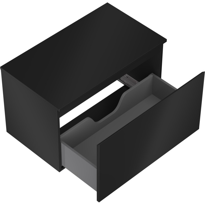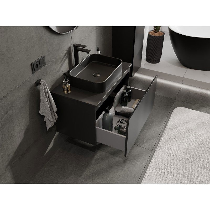 Špecifikácia produktu: Rozmery skrinky: Šírka: 80 cm Výška: 47 cm Hĺbka: 46 cm Farba korpusu: Matná čierna Materiál korpusu: Lakovaná doska Farba čela: Matná čierna Materiál čela: Lakovaná MDF doska Štruktúra čela: Hladká Počet zásuviek: 1 Priestranná ľahký prístup k obsahu zásuvky Povrch odolný voči UV žiareniu Rozmery pracovnej dosky: Šírka: 80,6 cm Hĺbka: 46,5 cm Hrúbka: 1,8 cm Farba pracovnej dosky: Matná čierna Materiál pracovnej dosky: Lakovaná MDF doska Povrch odolný voči UV žiareniu Ideálny ako podstavec pre umývadlá