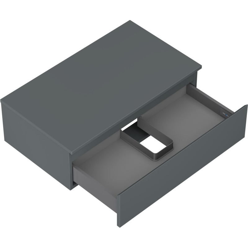 Špecifikácia produktu: Rozmery skrinky: Šírka: 80 cm Výška: 23,5 cm Hĺbka: 46 cm Farba korpusu: Matný grafit Materiál korpusu: Lakovaná doska Farba čela: Matný grafit Materiál čela: Lakovaná MDF doska Štruktúra čela: Hladká Počet zásuviek: výsuv pre ľahký prístup k obsahu zásuvky Povrch odolný voči UV žiareniu Rozmery pracovnej dosky: Šírka: 80,6 cm Hĺbka: 46,5 cm Hrúbka: 1,8 cm Farba pracovnej dosky: Matný grafit Materiál pracovnej dosky: Lakovaná MDF doska Povrch odolný voči UV žiareniu Ideálny ako podstavec