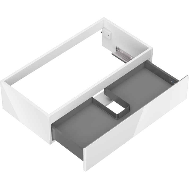 Špecifikácia produktu: Šírka: 90 cm Výška: 23,5 cm Hĺbka: 46 cm Farba korpusu: Lesklá biela Materiál korpusu: Lakovaná doska Farba čela: Lesklá biela Materiál čela: Lakovaná MDF doska Štruktúra čela: Hladká Počet zásuviek: 1 Priestranná zásuvka s funkciou obsahu zásuvky Povrch odolný voči UV žiareniu Kombinovateľný s pracovnou doskou alebo umývadlom Otis, Vela Zmontovaný produkt