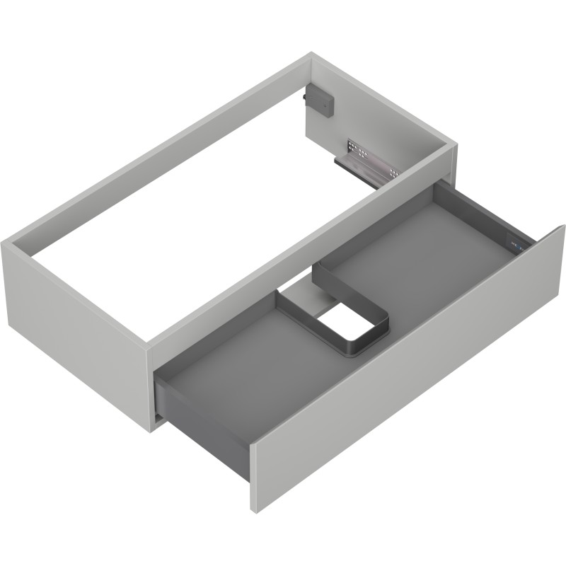 Špecifikácia produktu: Šírka: 90 cm Výška: 23,5 cm Hĺbka: 46 cm Farba korpusu: Matne šedá Materiál korpusu: Lakovaná doska Farba čela: Matne šedá Materiál čela: Lakovaná MDF doska Štruktúra čela: Hladká Počet zásuviek: 1 Priestranná zásuvka s funkciou zásuvky Povrch odolný voči UV žiareniu Kombinovateľný s pracovnou doskou alebo umývadlom Otis, Vela Zostavený produkt