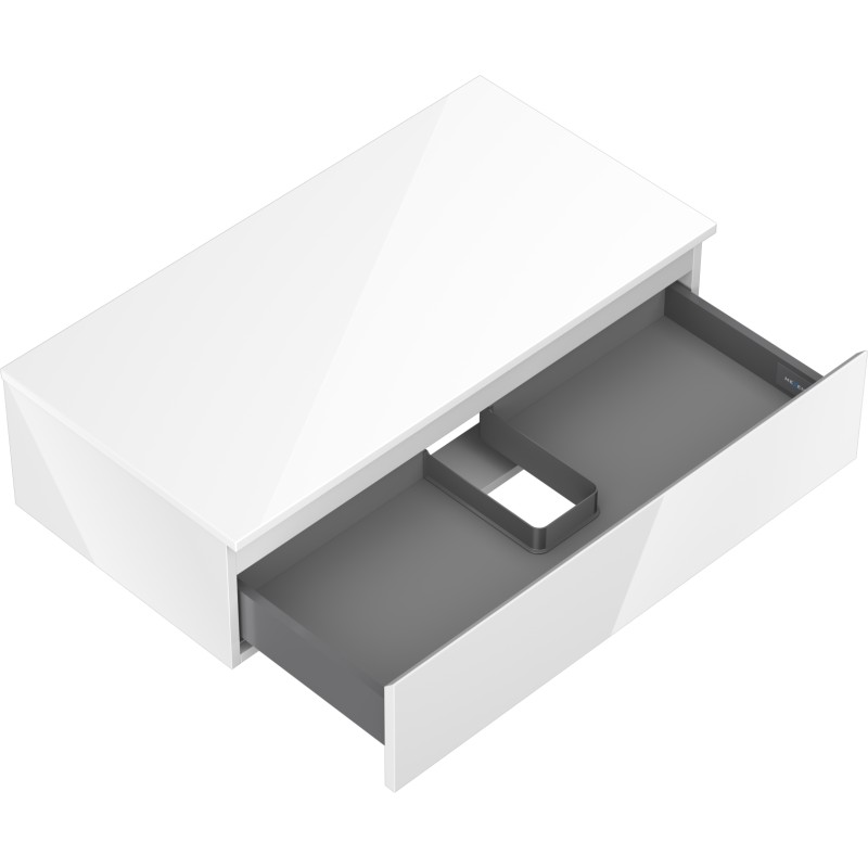 Špecifikácia produktu: Rozmery skrinky: Šírka: 90 cm Výška: 23,5 cm Hĺbka: 46 cm Farba korpusu: Biela lesklá Materiál korpusu: Lakovaná doska Farba čela: Biela lesklá Materiál čela: Lakovaná MDF doska Štruktúra čela: Hladká Počet zásuviek: výsuv pre ľahký prístup k obsahu zásuvky Povrch odolný voči UV žiareniu Rozmery pracovnej dosky: Šírka: 90,6 cm Hĺbka: 46,5 cm Hrúbka: 1,8 cm Farba pracovnej dosky: Biela lesklá Materiál pracovnej dosky: Lakovaná MDF doska Povrch odolný voči UV žiareniu Ideálny ako podstavec