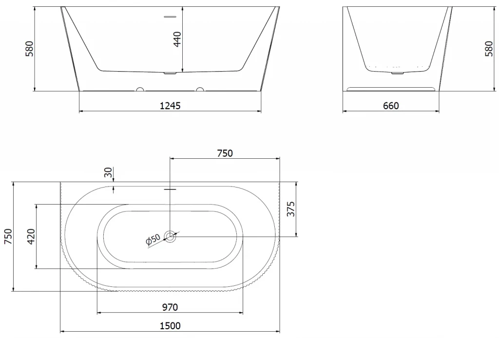 MEXEN - Oris voľne stojaca vaňa nástenná reliéf 150 x 75, biela/čierna, bez krytky prepadu a zátky (52871507575-SS)