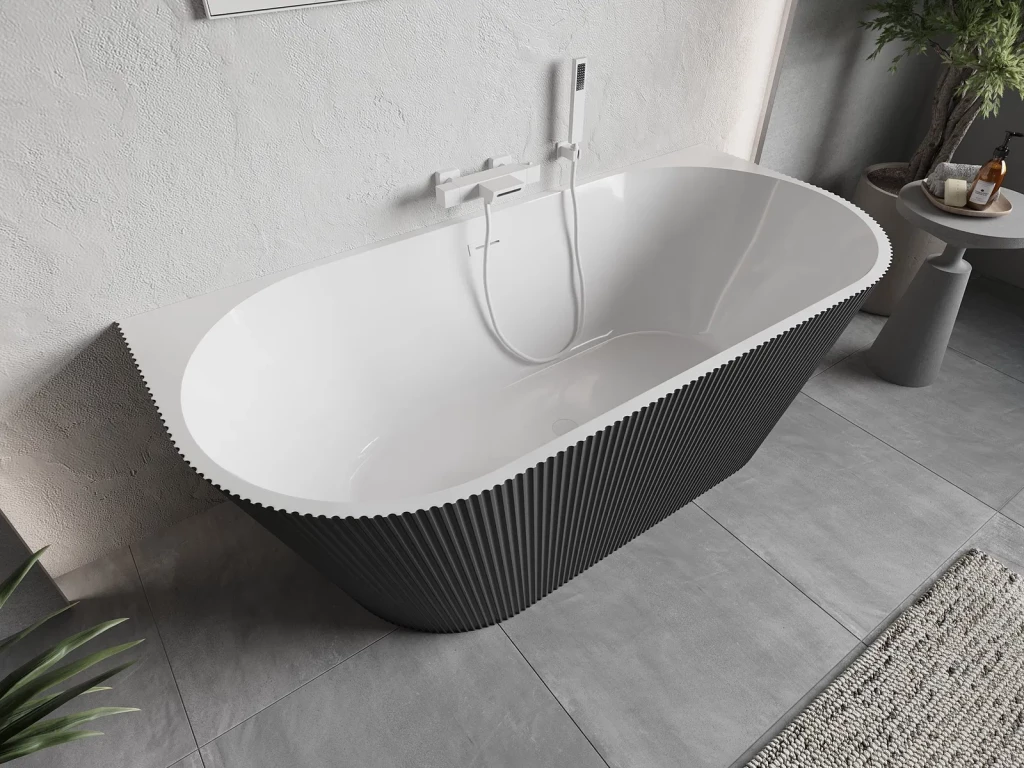 MEXEN - Oris voľne stojaca vaňa nástenná reliéf 150 x 75, biela/sivá, bez krytky prepadu a zátky (52871507562-SS)