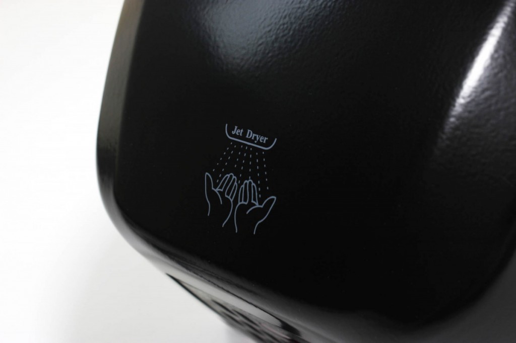 Dýza v tvare ostriaPrúd teplého vzduchu vychádza z osúšače cez úzku podlhovastú trysku. Tak je voda z rúk nielen vysúšanie, ale aj stieraná. Vysúšanie prebieha podobne ako u veľkých tryskových sušičov.