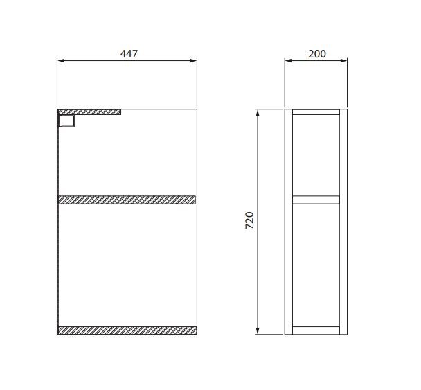 Otvorený modul pod nábytkovú dosku s policou , vďaka ktorému získame ďalší priestor na dekorácie alebo kúpeľňové doplnky. Korpus je vyrobený z laminovanej drevotrieskovej dosky vo farbe dub .