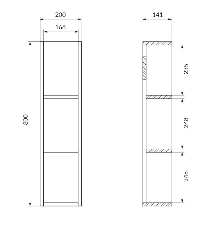 Táto otvorená nástenná skrinka je vyrobená z laminovanej dosky v teplom dubovom odtieni. Zadná strana skrinky má povrchovú úpravu s ľanovou textúrou.