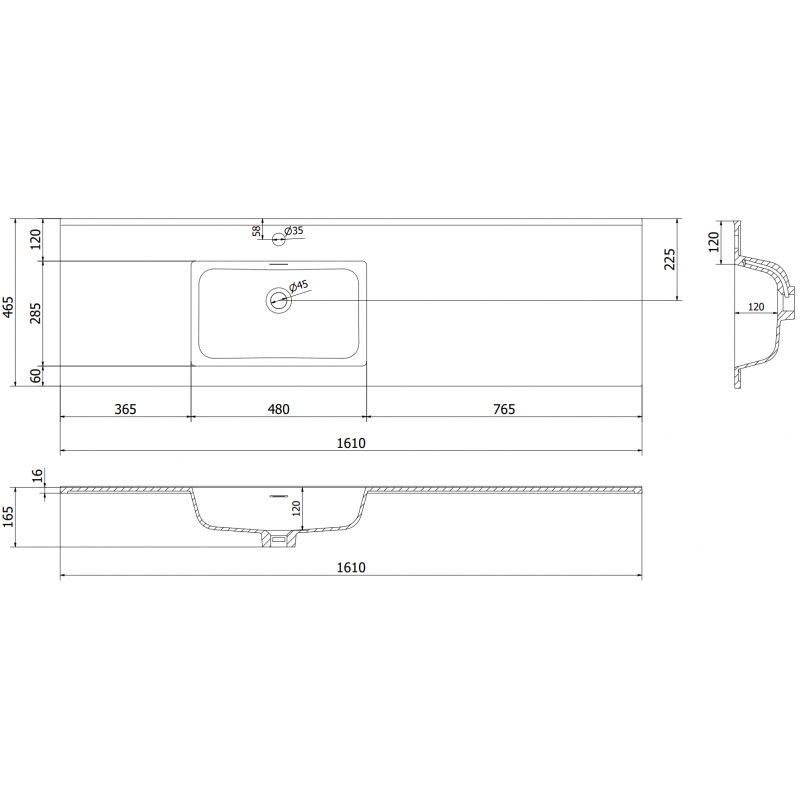 Špecifikácia produktu: Rozmer: 161x46, 5x16, 5 cm Hĺbka: 11,9 cm Typ: Zapustené, Ľavé Farba: Matná čierna Materiál: Konglomerát Otvor pre prepad: Áno Otvor pre kohútik: Áno