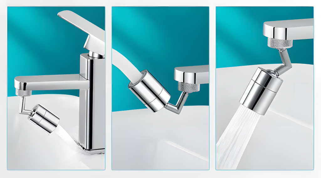Predstavujeme vám otočný nástavec batérie s nastaviteľným prúdom vody, otáčaním o 360 stupňov v troch rovinách a možnosťou nastavenia v mnohých uhloch. Je to skvelý spôsob, ako zlepšiť funkčnosť vašej kuchyne alebo kúpeľne. sa pre väčšinu štandardných vodovodných batérií Rozširujúca sada obsahuje sadu tesnení a montážnu sadu.