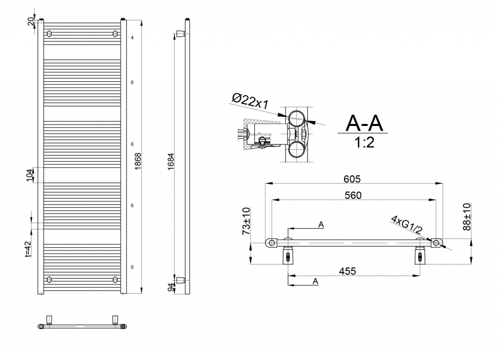 - Vykurovacia tyč a pripojovacie ventily nie sú súčasťou balenia