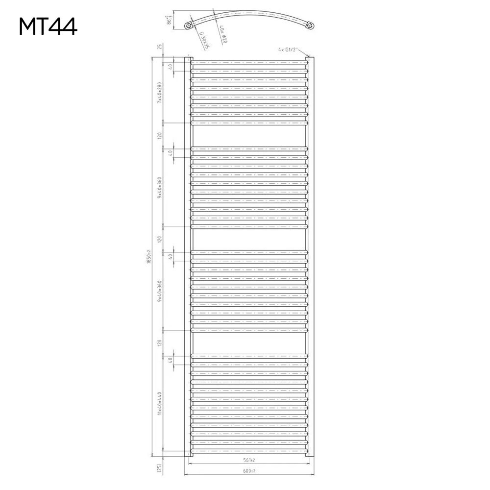 Mereo Vykurovací rebrík, oblý, 600x1850 mm, biely (MT44)