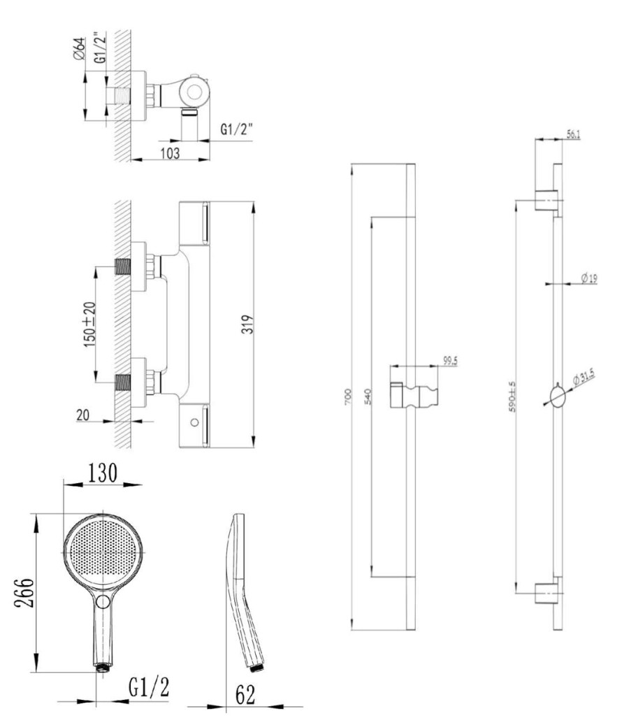 sprchová tyč 700 mm
