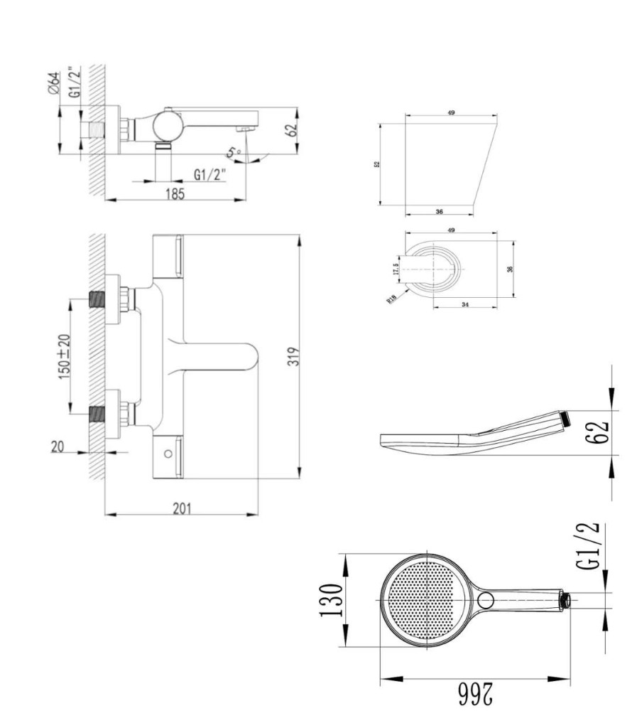 nástenný držiak sprchy