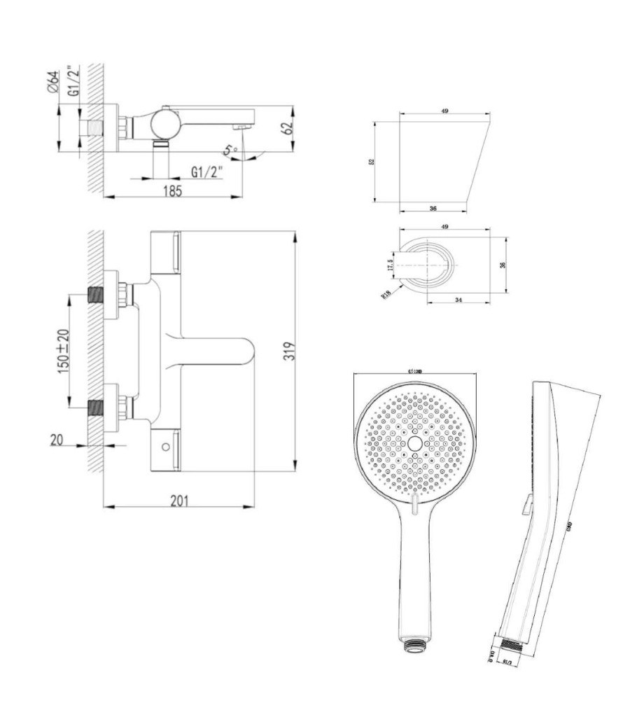 nástenný držiak sprchy