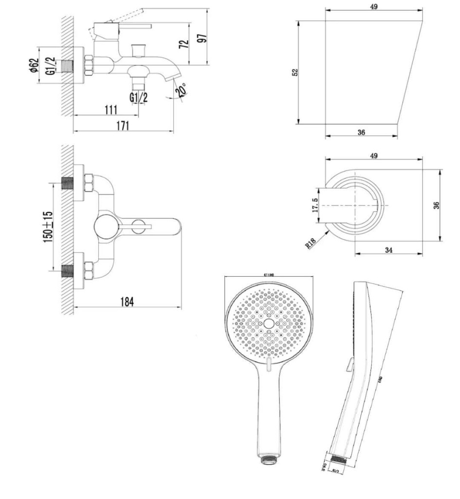 nástenný držiak sprchy