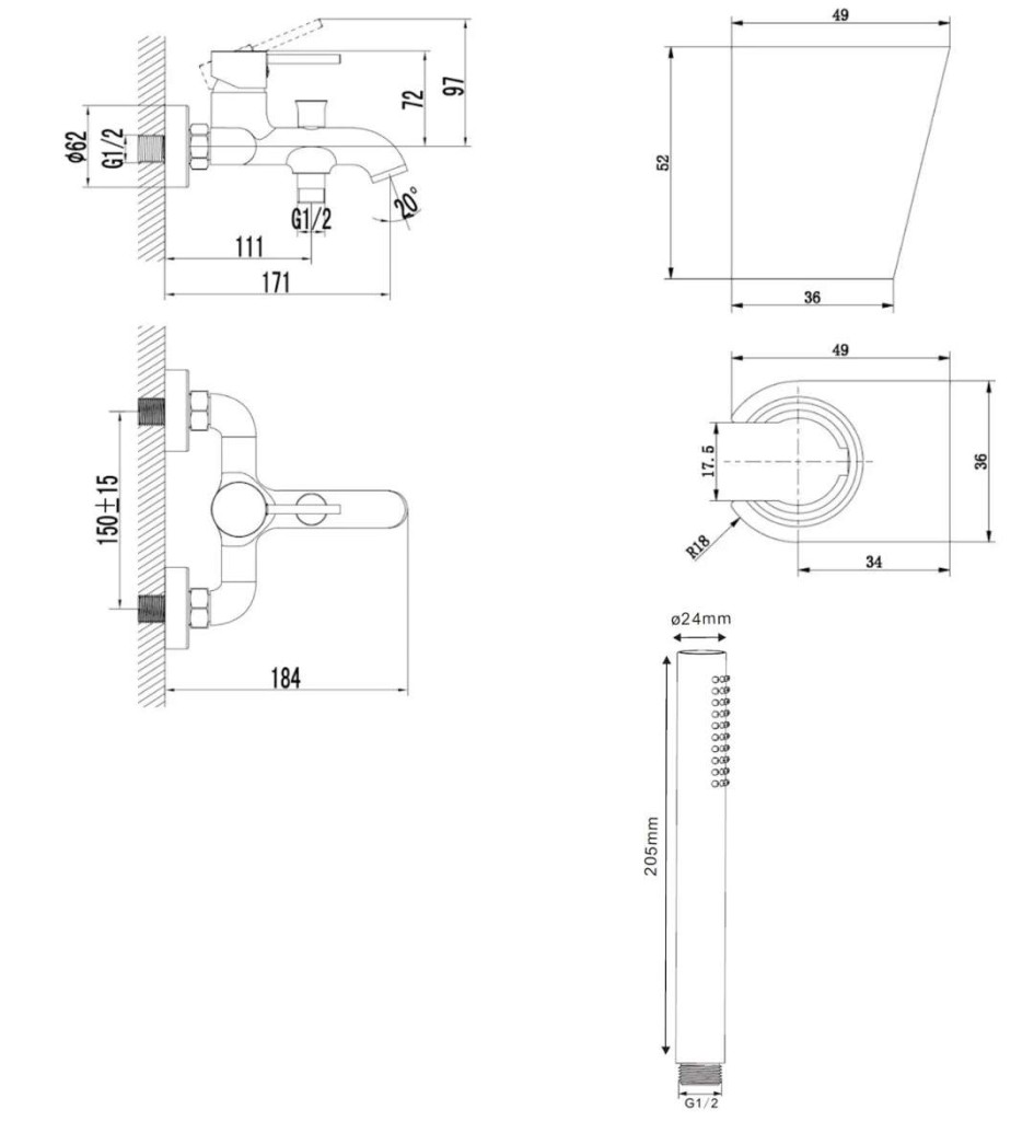 nástenný držiak sprchy